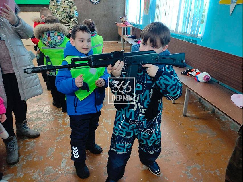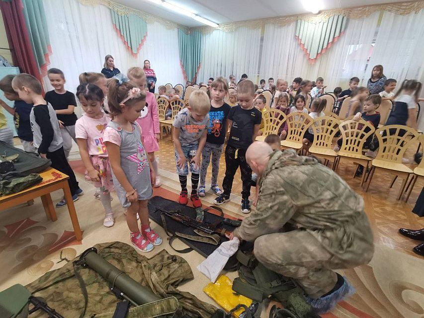 Патриотический урок для дошколят в Подмосковье с автоматами и гранатомётом